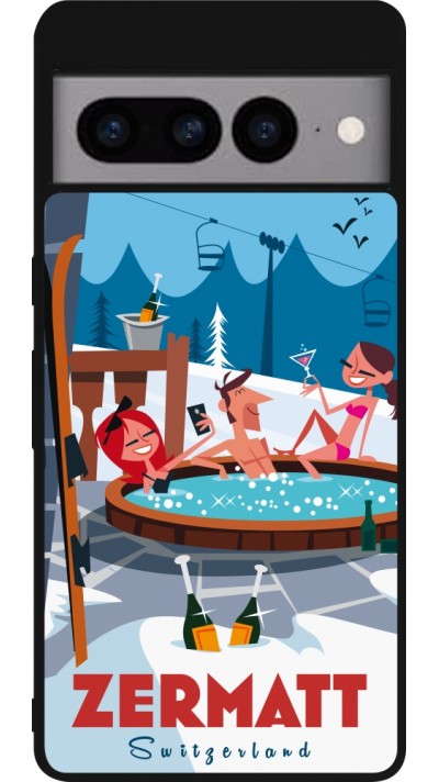 Google Pixel 7 Pro Case Hülle - Silikon schwarz Zermatt Mountain Jacuzzi