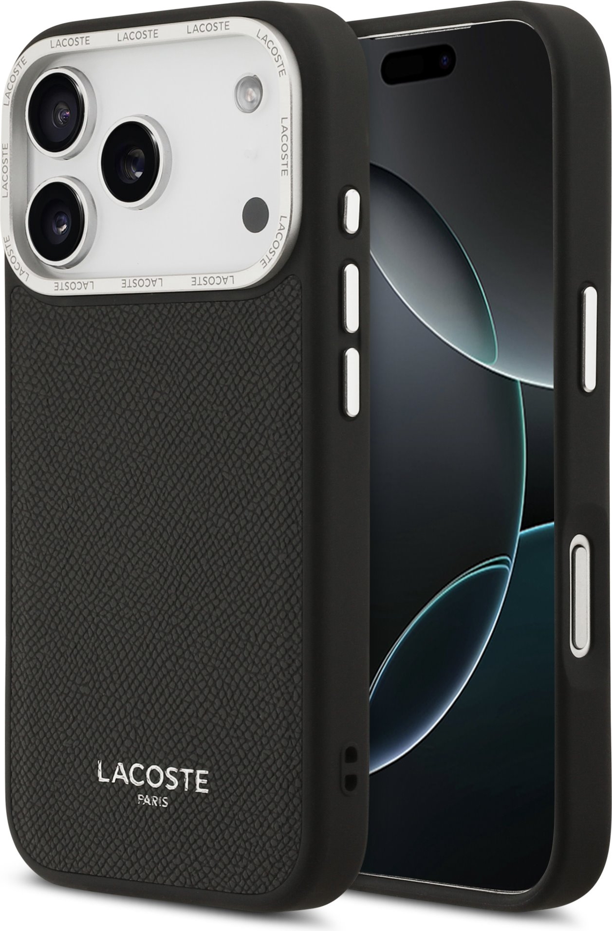 Dank der präzisen Passform sitzt die Hülle perfekt am Gerät und ermöglicht einfachen Zugang zu allen Tasten und Anschlüssen. Zudem unterstützt sie die MagSafe-Technologie, was eine problemlose Nutzung von kabellosen Ladegeräten und weiteren MagSafe-Zubehörteilen ermöglicht. Das schlichte Design wird durch ein dezentes Lacoste-Logo auf der Rückseite abgerundet, während der wiederkehrende Schriftzug am Kamerarahmen dem Case einen einzigartigen Charakter verleiht.