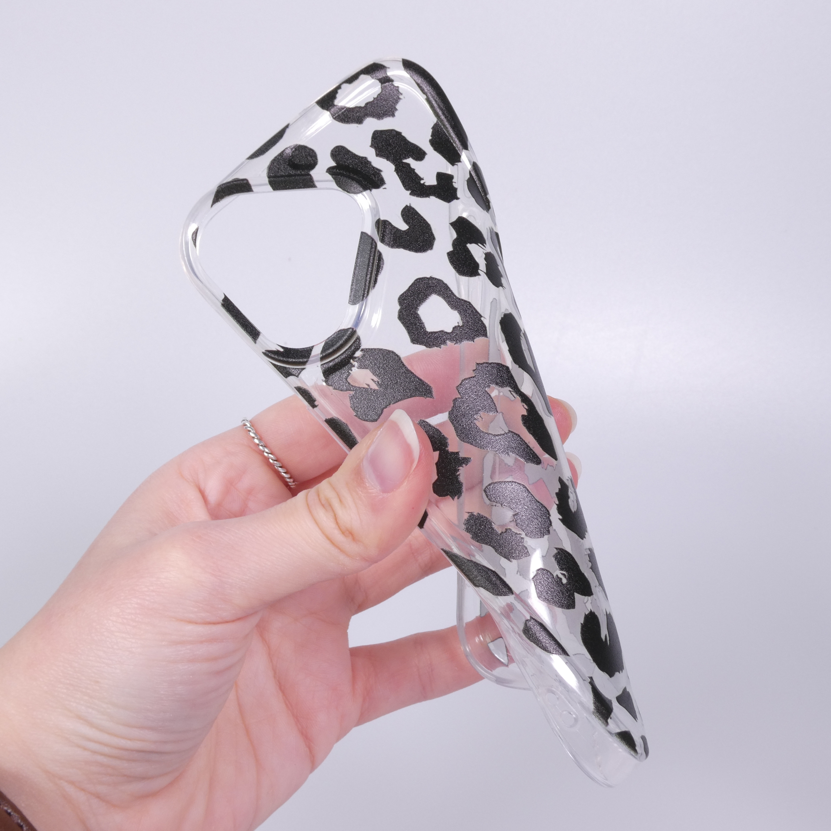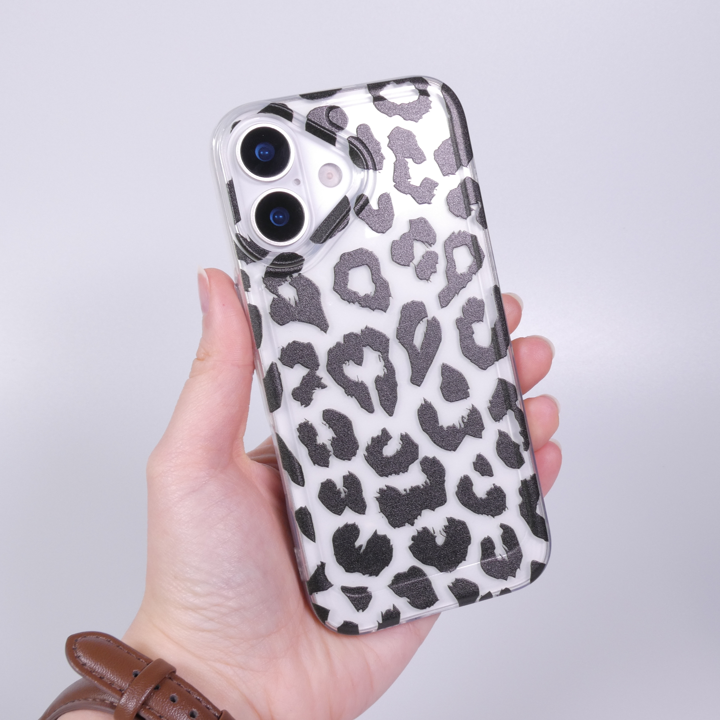 Schützen Sie Ihr iPhone 17 stilvoll mit unserer eleganten Hülle im trendigen Schwarz-Weiß-Leopardendesign. Diese transparente Silikon-Schutzhülle bietet nicht nur einen hervorragenden Schutz vor Stößen und Kratzern, sondern verleiht Ihrem Smartphone auch einen modischen Look. Das weiche, flexible Material sorgt für eine angenehme Haptik und eine perfekte Passform, während das auffällige Muster jedem Outfit einen besonderen Akzent verleiht.