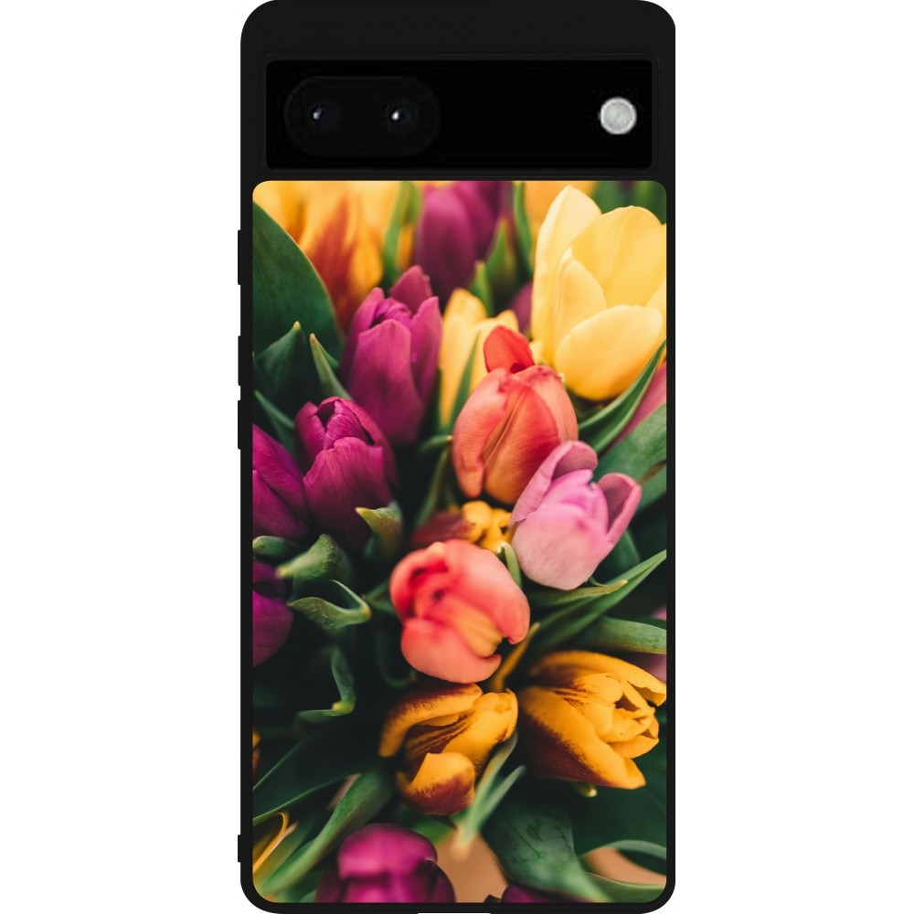 Google Pixel 6a Case Hülle - Silikon schwarz Bouquet of tulips 2026