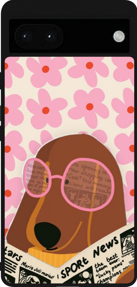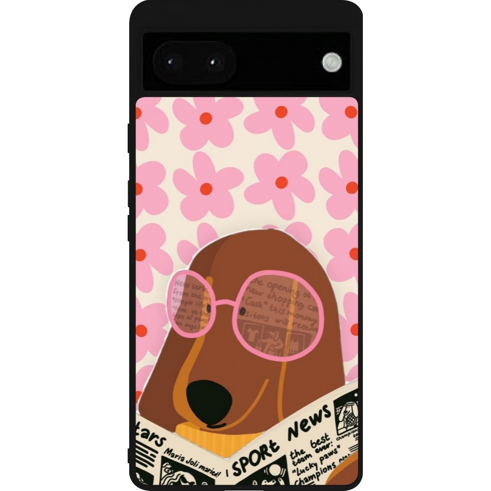 Google Pixel 6a Case Hülle - Silikon schwarz Dog with newspaper 2026