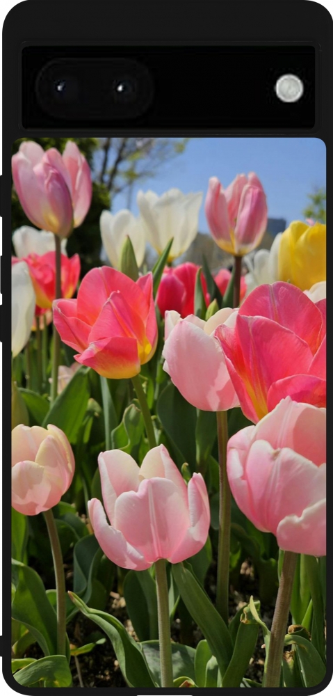Google Pixel 6a Case Hülle - Silikon schwarz Tulips 2026