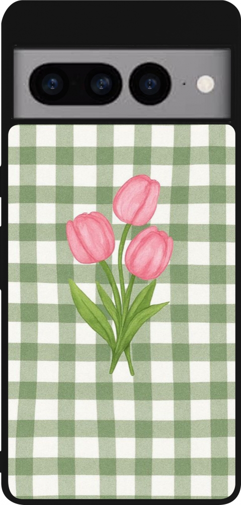Google Pixel 7 Pro Case Hülle - Silikon schwarz Green vichy tulips 2026