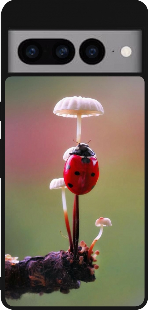 Google Pixel 7 Pro Case Hülle - Silikon schwarz Ladybird on a mushroom 2026