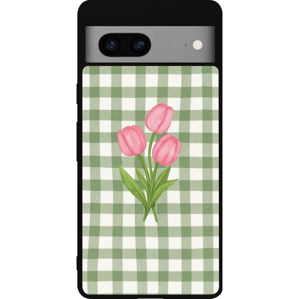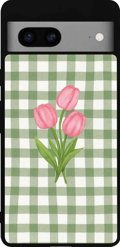 Google Pixel 7a Case Hülle - Silikon schwarz Green vichy tulips 2026