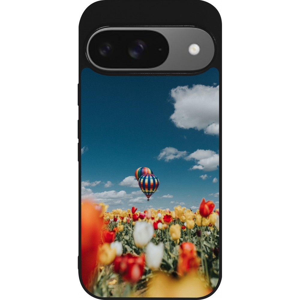 Google Pixel 9 / Pixel 9 Pro Case Hülle - Silikon schwarz Hot air balloon 2026