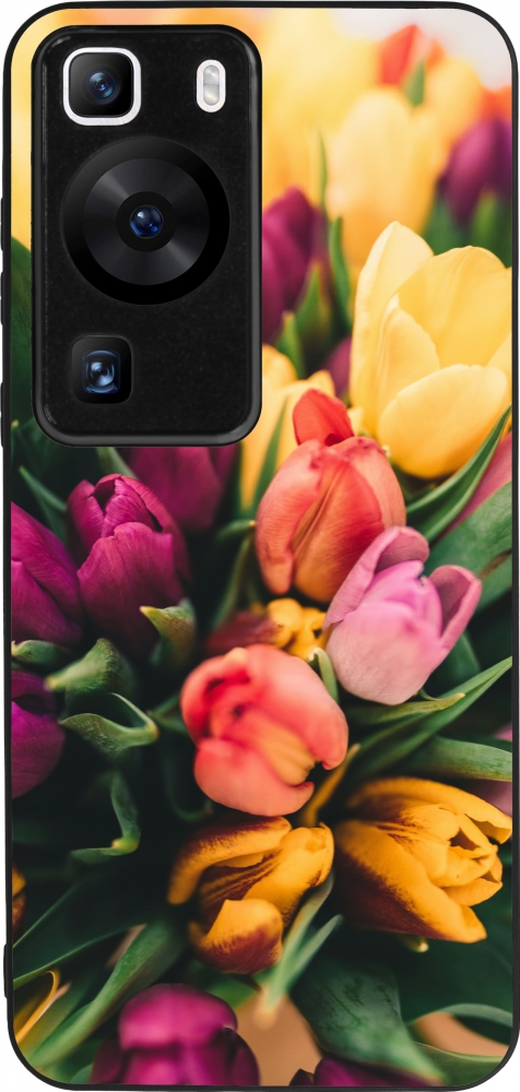 Huawei P60 Case Hülle - Silikon schwarz Bouquet of tulips Spring 2026