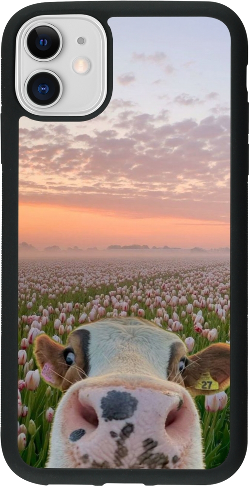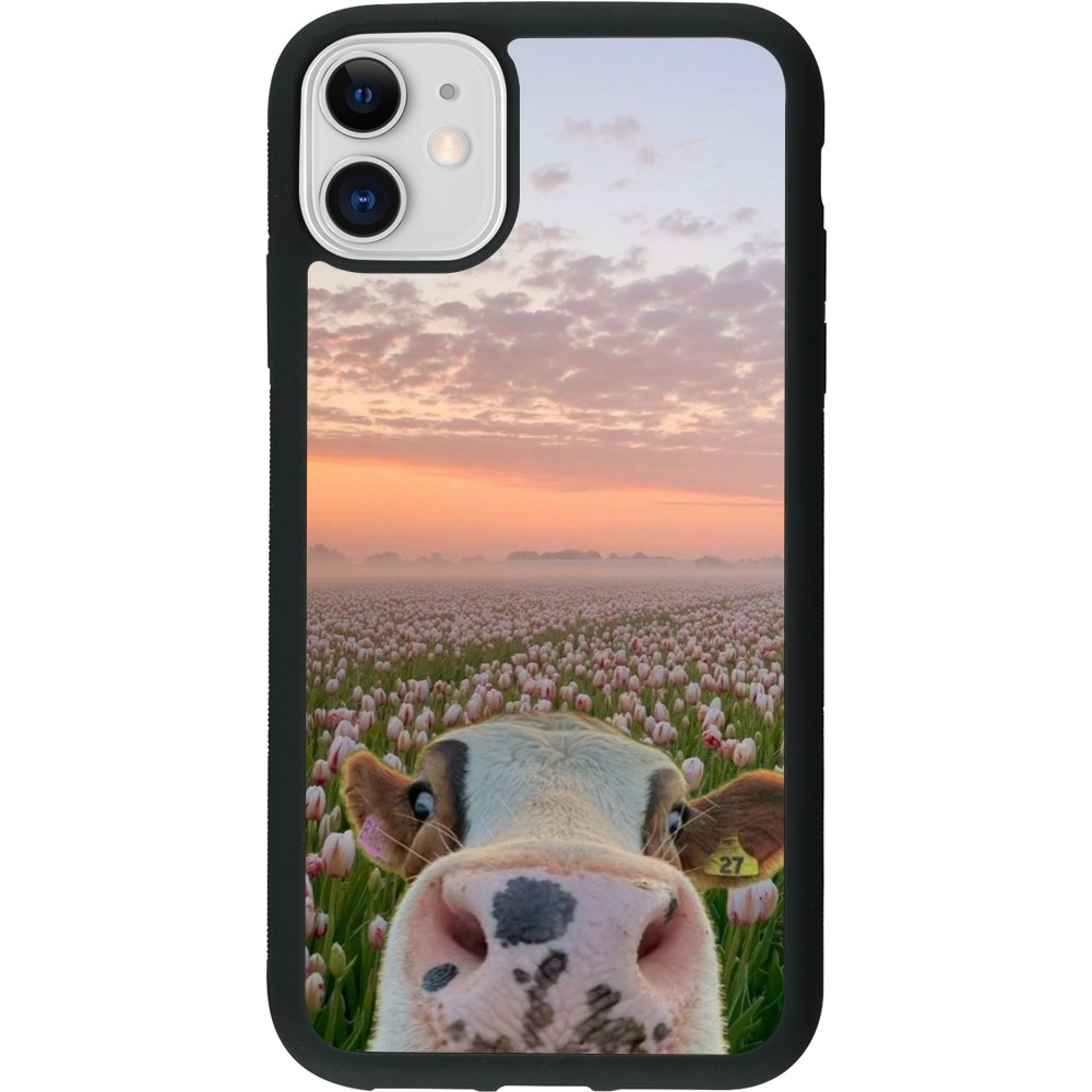 iPhone 11 Case Hülle - Silikon schwarz Cow with tulips 2026