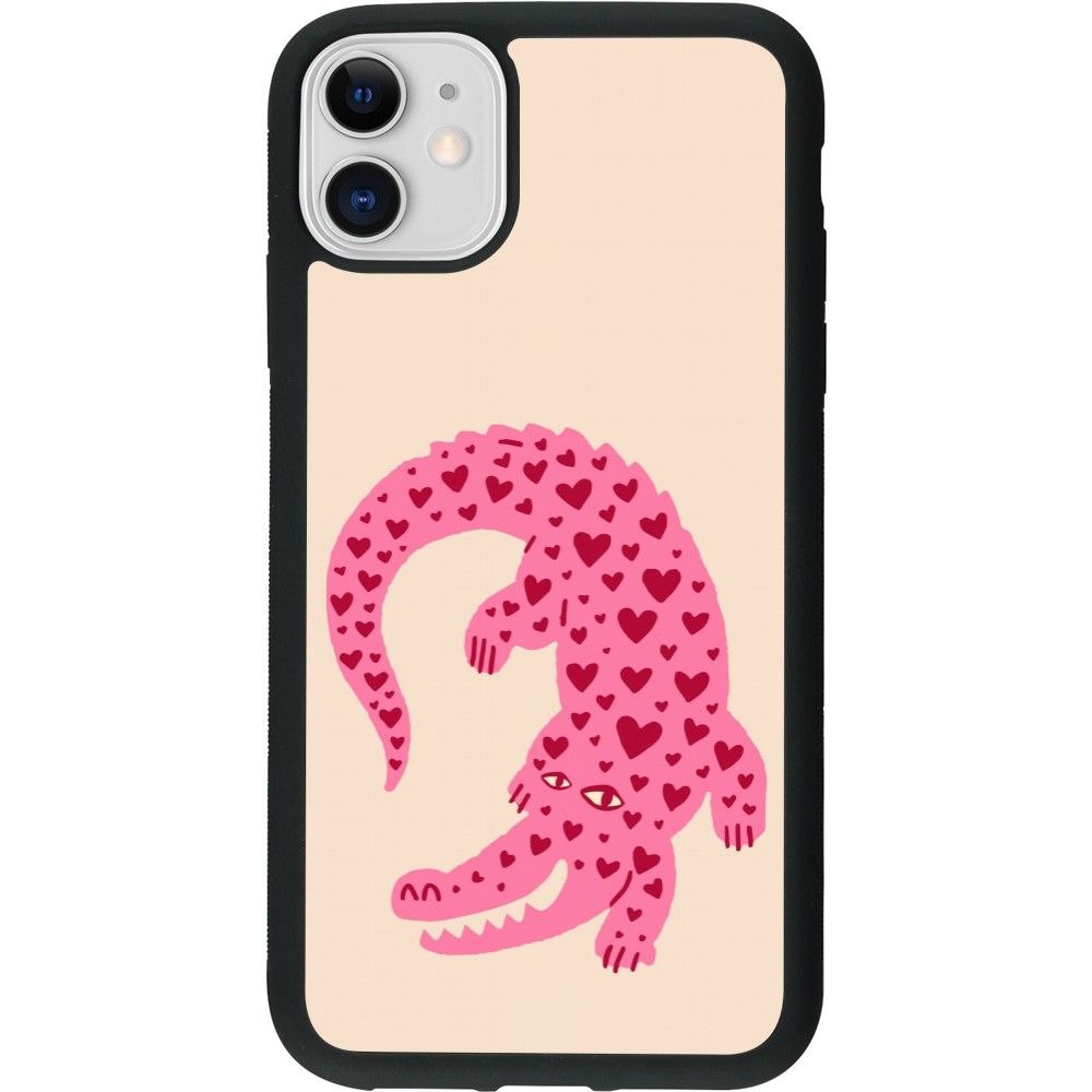 iPhone 11 Case Hülle - Silikon schwarz Pink crocodile 2026