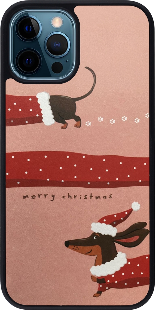 iPhone 12 / 12 Pro Case Hülle - Silikon schwarz Christmas 25 Teckel Merry Xmas