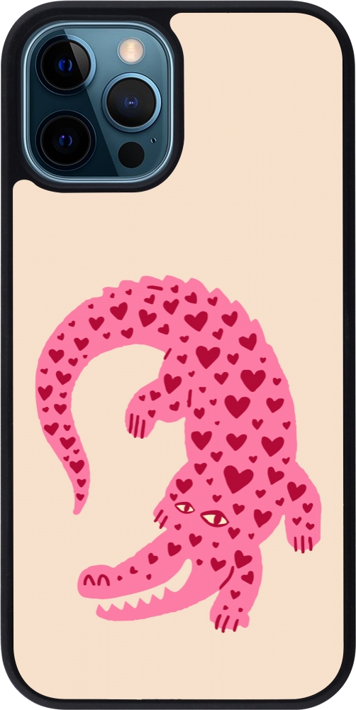 iPhone 12 / 12 Pro Case Hülle - Silikon schwarz Pink crocodile 2026