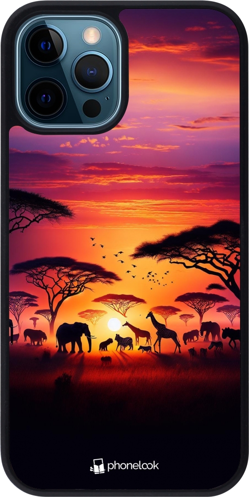 iPhone 12 / 12 Pro Case Hülle - Silikon schwarz Safari Sonnenuntergang Wildtiere
