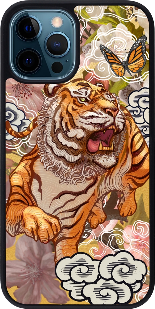 iPhone 12 / 12 Pro Case Hülle - Silikon schwarz Spring 23 japanese tiger