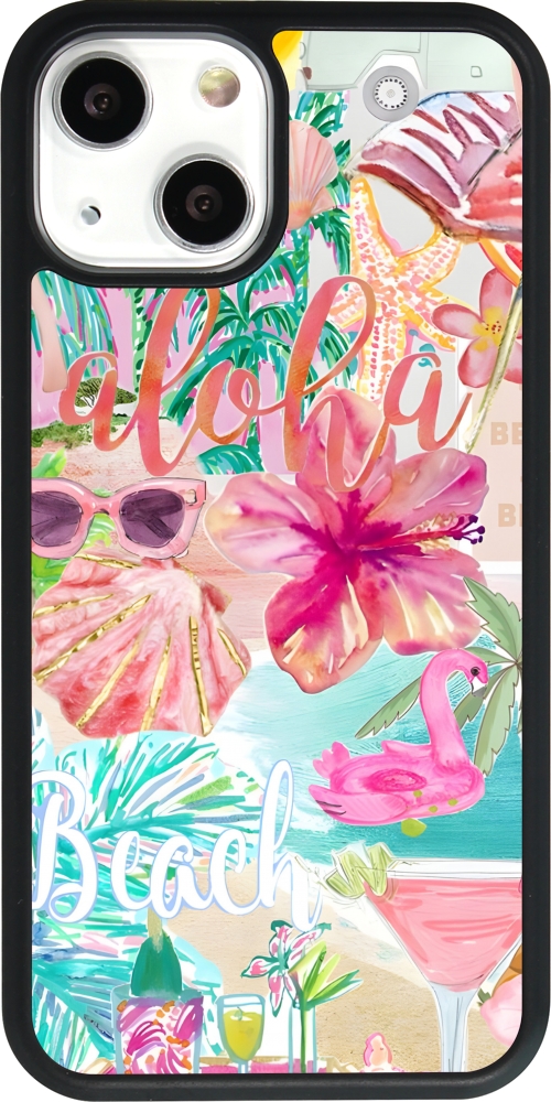 iPhone 13 mini Case Hülle - Silikon schwarz Preppy Collage Aloha