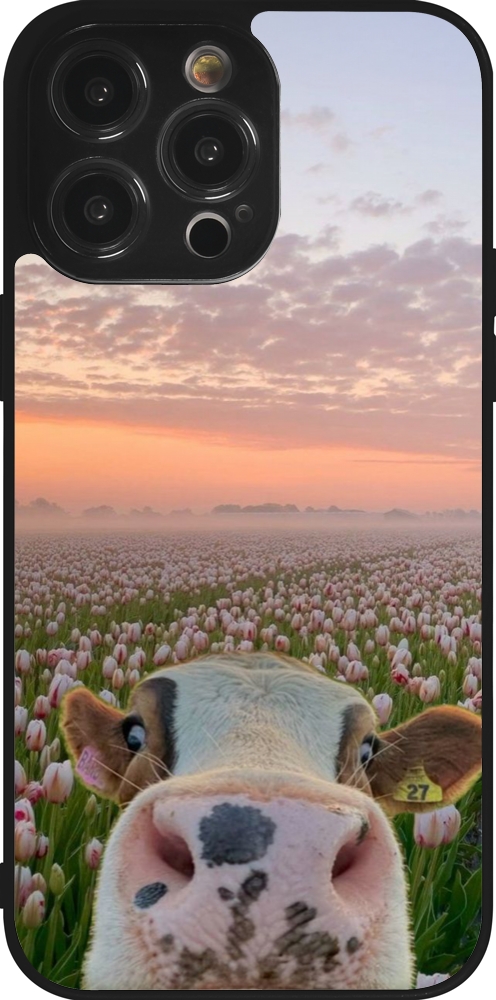 iPhone 14 Pro Max Case Hülle - Silikon schwarz Cow with tulips 2026