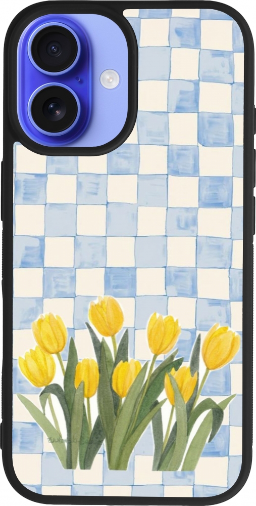 iPhone 16 Case Hülle - Silikon schwarz Blue vichy tulips Spring 2026