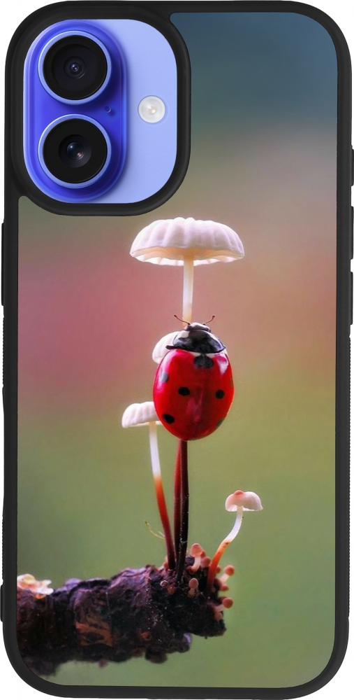iPhone 16 Case Hülle - Silikon schwarz Ladybird on a mushroom Spring 2026