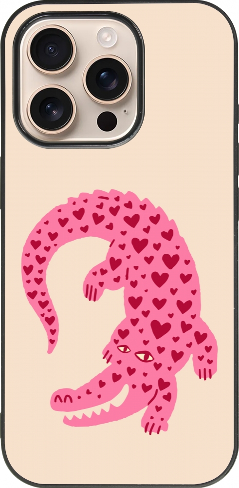 iPhone 16 Pro Case Hülle - Silikon schwarz Pink crocodile 2026