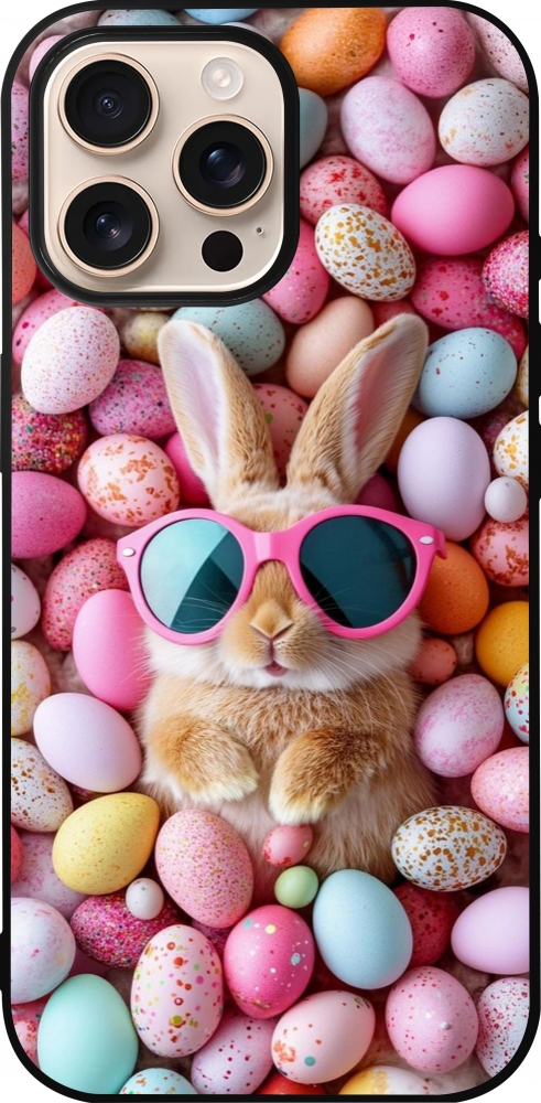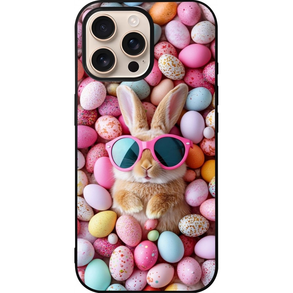 iPhone 16 Pro Max Case Hülle - Silikon schwarz Easter 2026 Rabbit fun