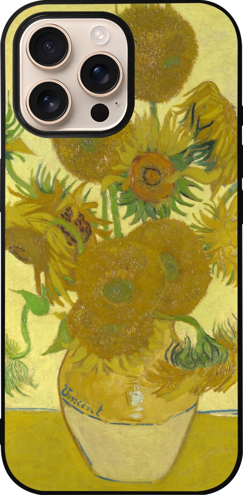 iPhone 16 Pro Max Case Hülle - Silikon schwarz Kunstbild - Sonnenblumen - Van Gogh