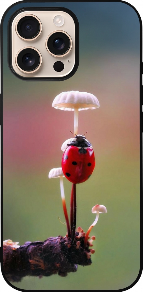 iPhone 16 Pro Max Case Hülle - Silikon schwarz Ladybird on a mushroom 2026