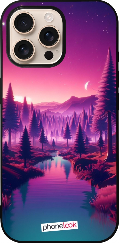 iPhone 16 Pro Max Case Hülle - Silikon schwarz Lila-rosa Landschaft