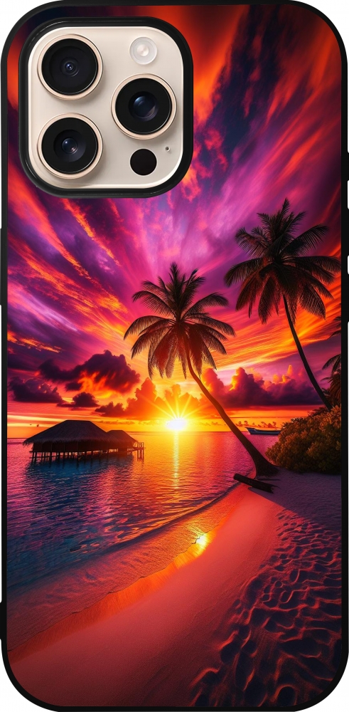 iPhone 16 Pro Max Case Hülle - Silikon schwarz Malediven Abenddämmerung Glückseligkeit