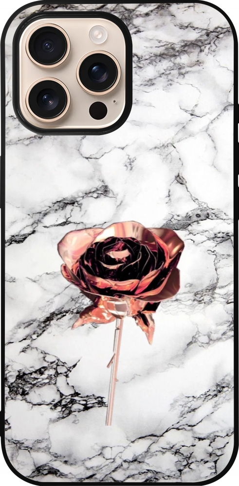 iPhone 16 Pro Max Case Hülle - Silikon schwarz Marble Rose Gold