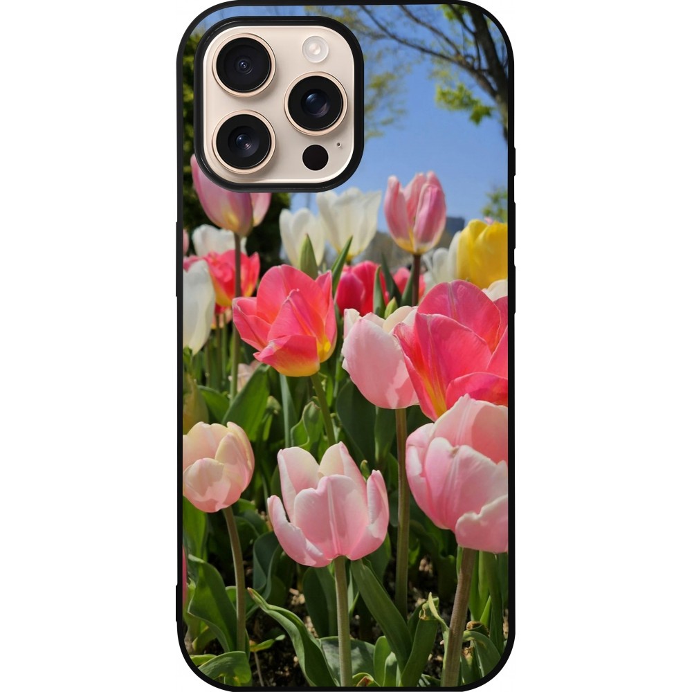 iPhone 16 Pro Max Case Hülle - Silikon schwarz Tulips 2026