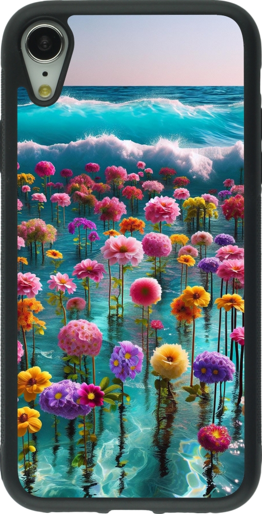 iPhone XR Case Hülle - Silikon schwarz Blumenmeer Wellen
