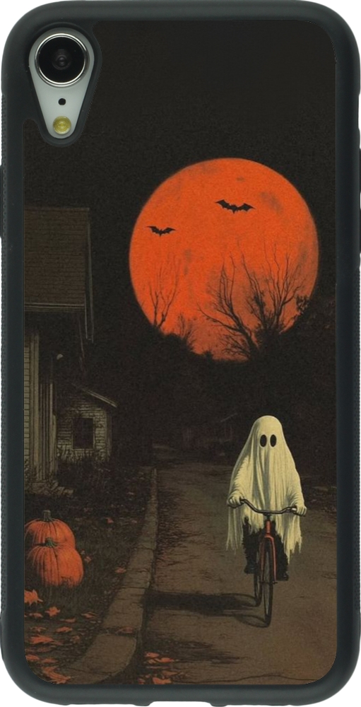 iPhone XR Case Hülle - Silikon schwarz Halloween 2025 Ghost on a bicycle