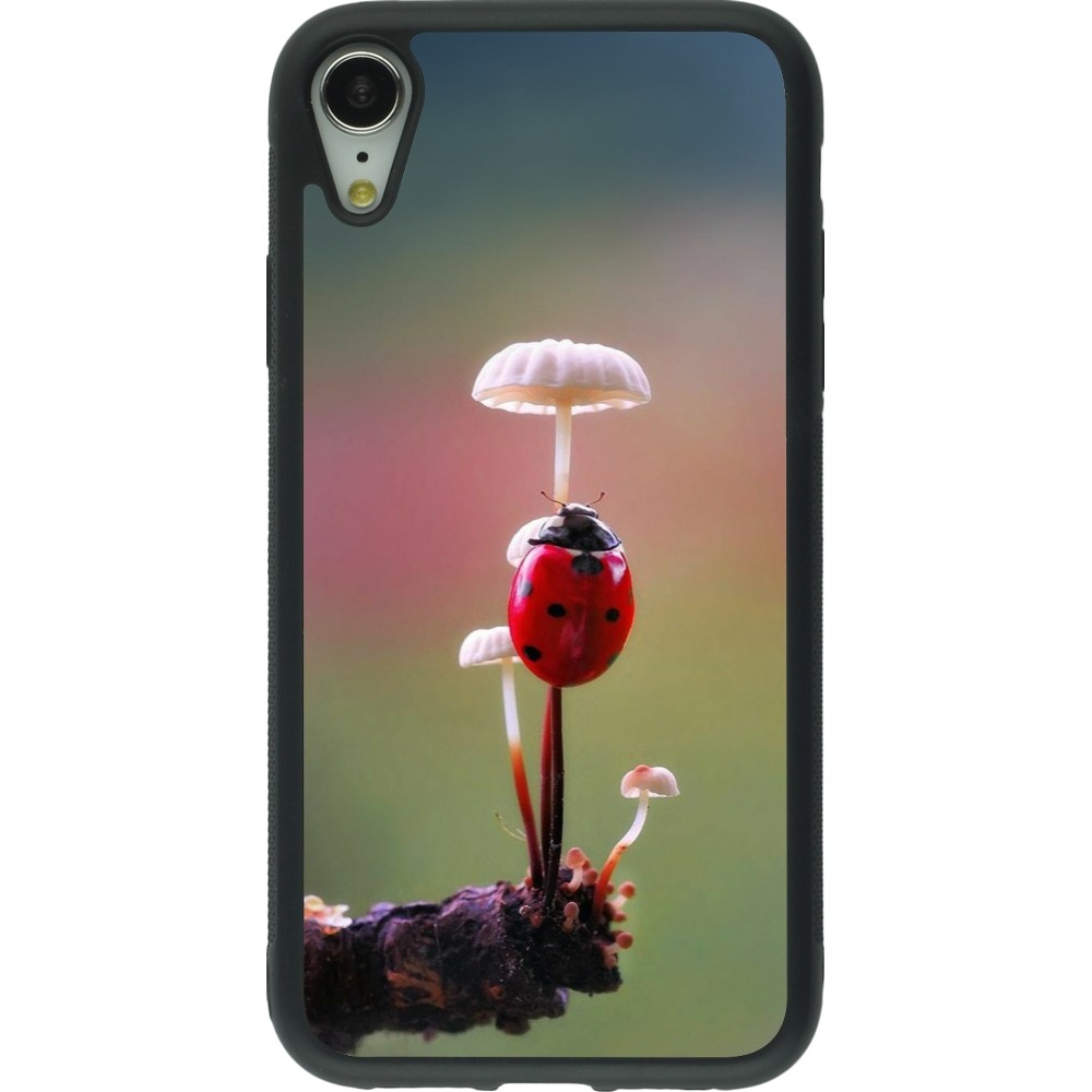iPhone XR Case Hülle - Silikon schwarz Ladybird on a mushroom 2026