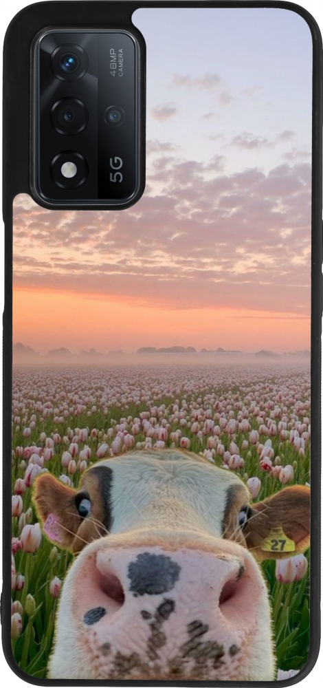 OPPO A93s 5G Case Hülle - Silikon schwarz Cow with tulips Spring 2026