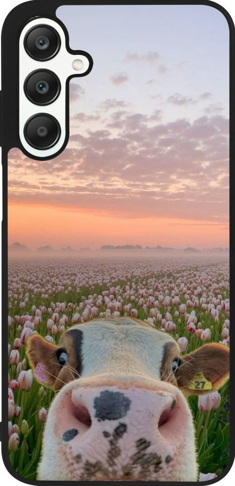 Samsung Galaxy A25 Case Hülle - Silikon schwarz Cow with tulips Spring 2026