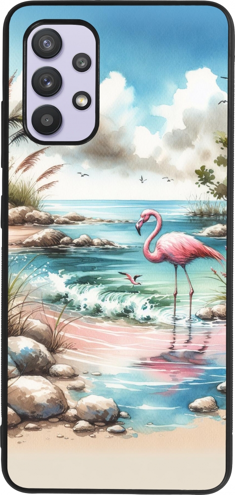 Samsung Galaxy A32 Case Hülle - Silikon schwarz Flamingo Aquarell