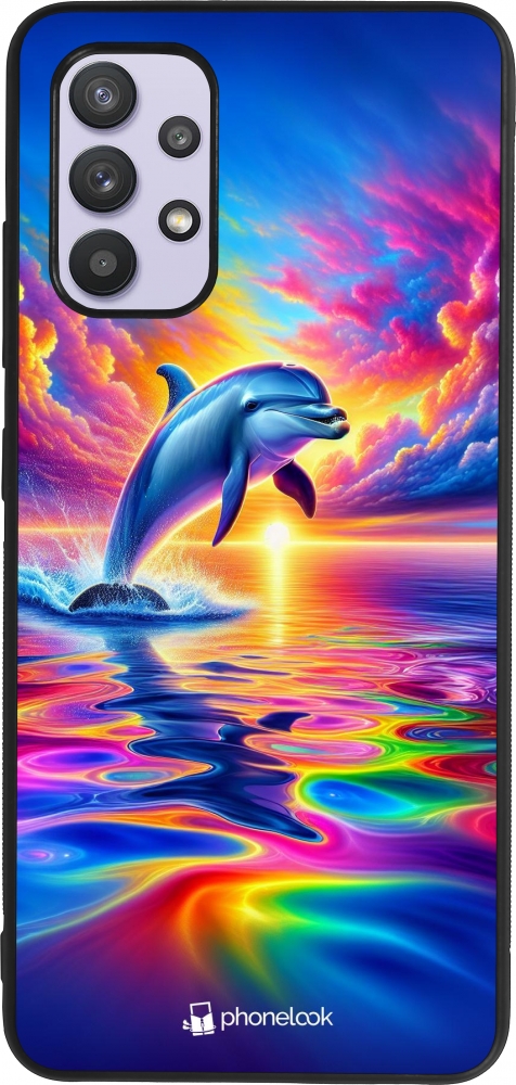 Samsung Galaxy A32 Case Hülle - Silikon schwarz Glücklicher Regenbogen-Delfin