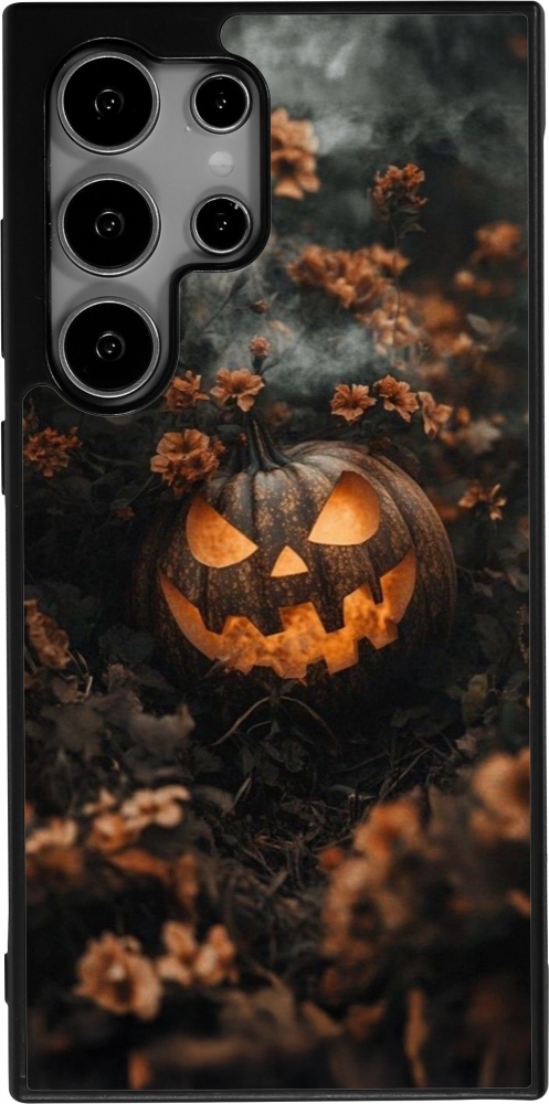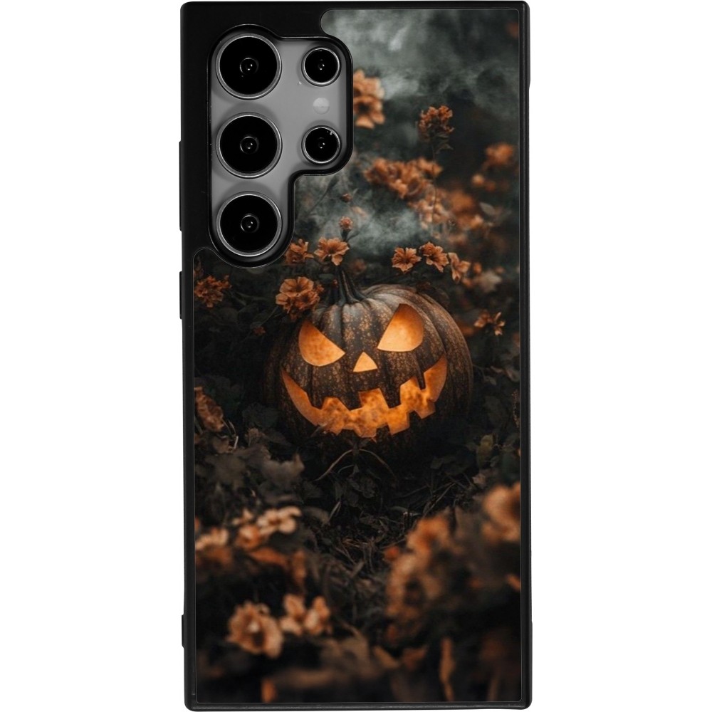 Samsung Galaxy S24 Ultra Case Hülle - Silikon schwarz Halloween 2025 Pumpkin with flowers