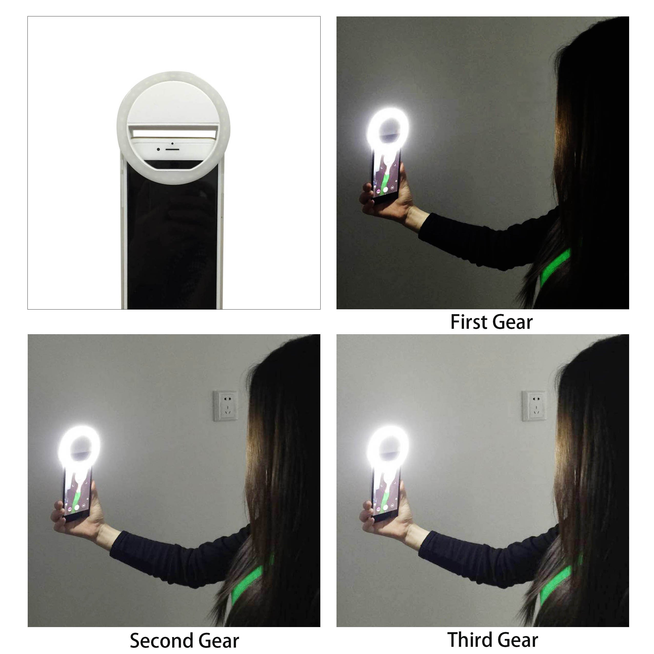 Kleiner beleuchteter Selfiering, womit du wunderschöne Selfies machen kannst. Damit gelingen dir Selfies mit sehr gut belichteten Gesichtern. Sehr gut geeignet für alle Make-Up Stars.
