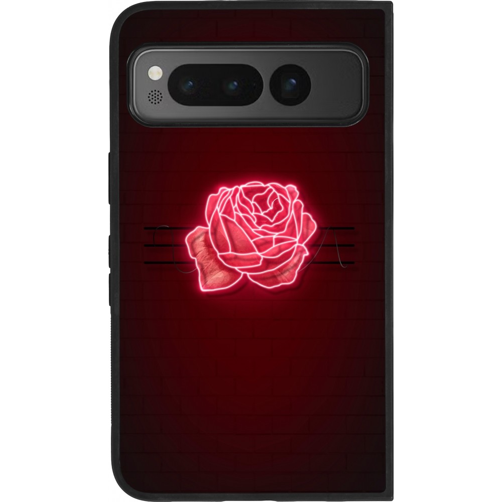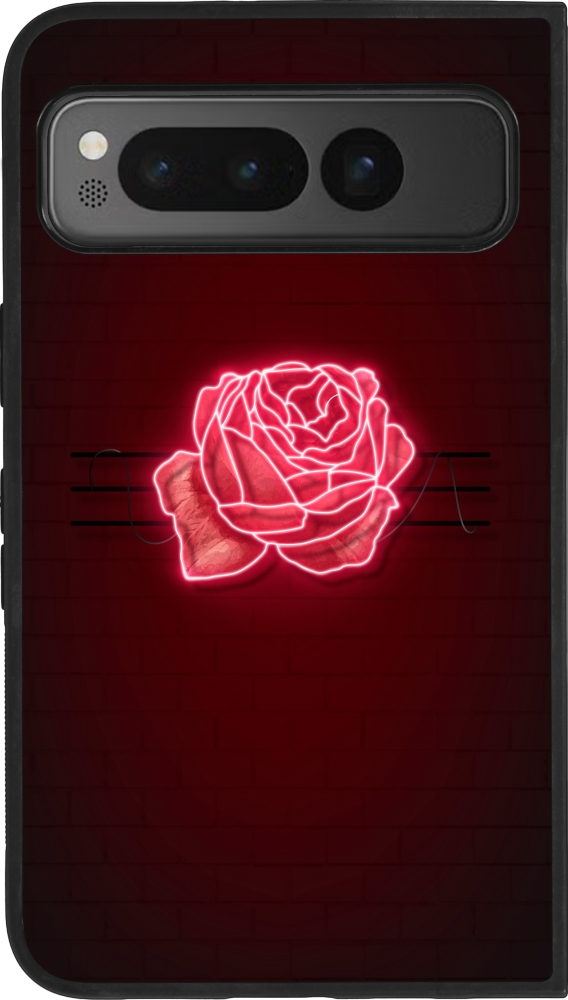 Coque Google Pixel Fold - Silicone rigide noir Spring 23 neon rose