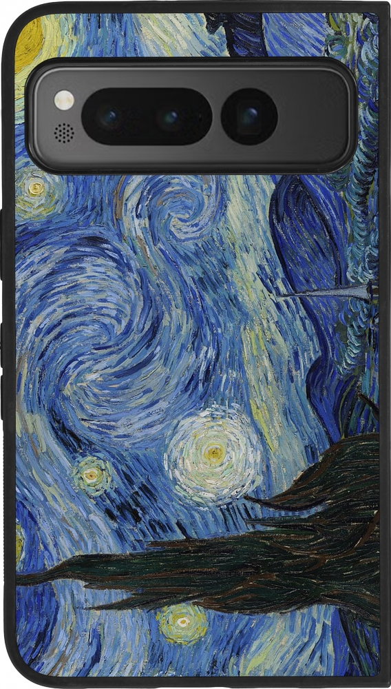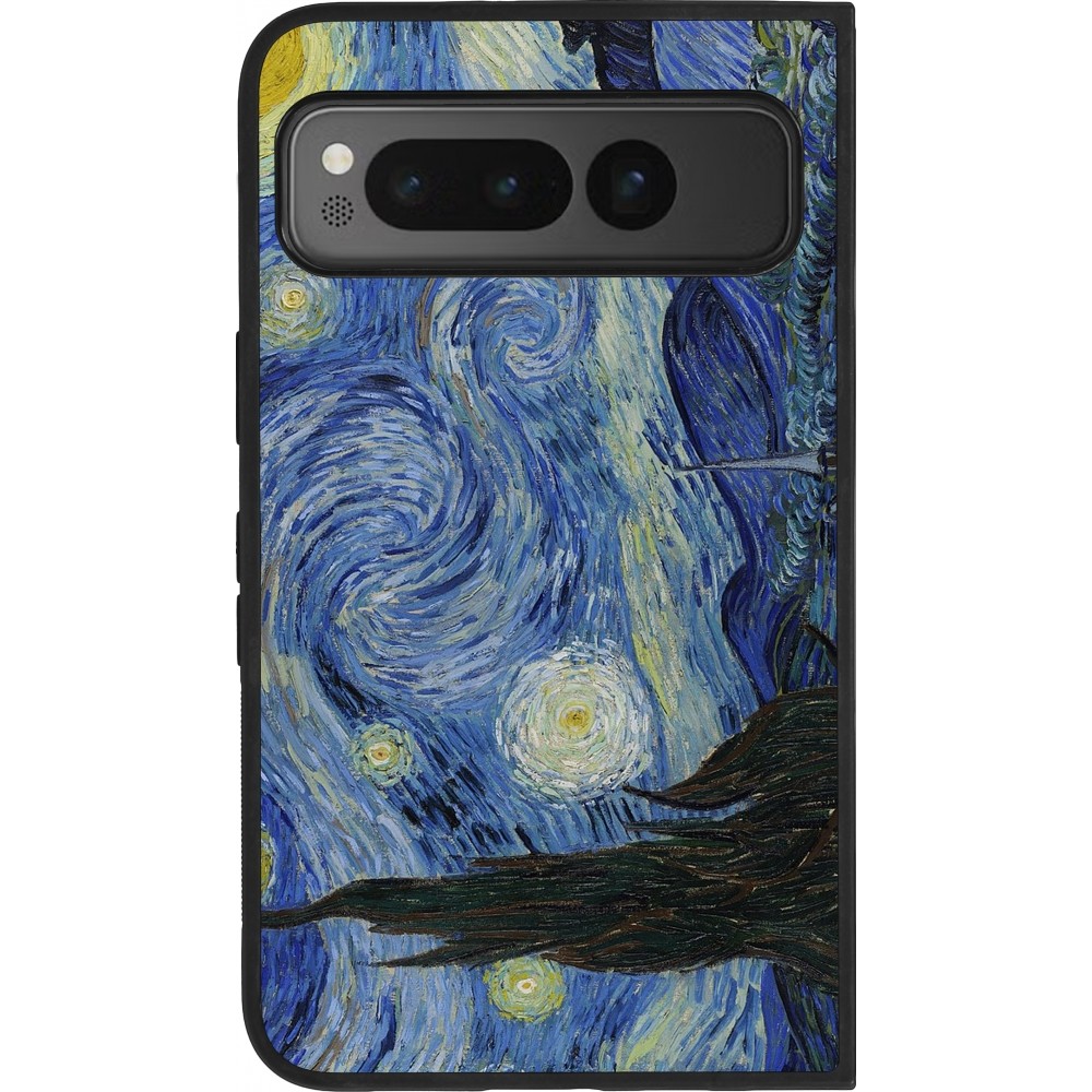Coque Google Pixel Fold - Silicone rigide noir Tableau art - La Nuit étoilée - Van Gogh