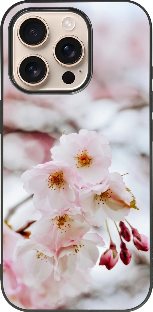 Coque iPhone 16 Pro - Silicone rigide noir Cherry tree Spring 2026