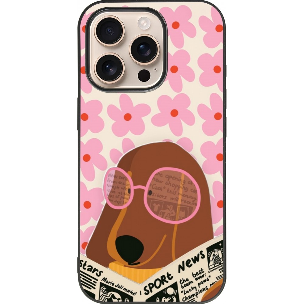Coque iPhone 16 Pro - Silicone rigide noir Dog with newspaper Spring 2026