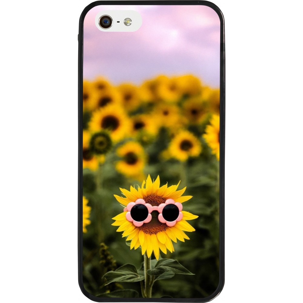Coque iPhone 5/5s / SE (2016) - Silicone rigide noir Sunflower with glasses 2026