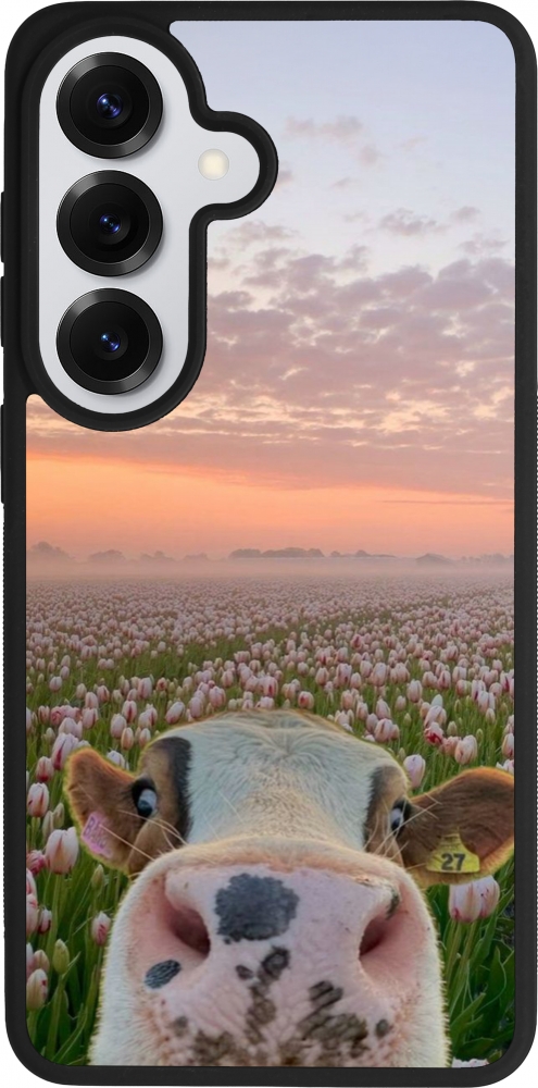 Coque Samsung Galaxy S26 - Silicone rigide noir Cow with tulips 2026