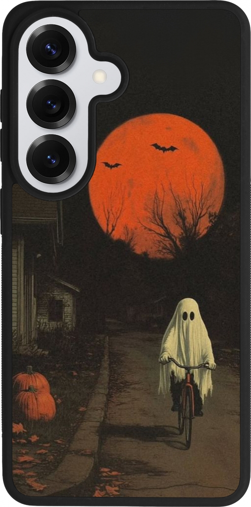 Coque Samsung Galaxy S26 - Silicone rigide noir Halloween 2025 Ghost on a bicycle