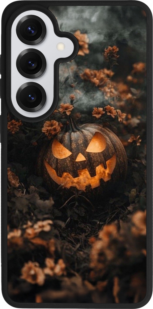 Coque Samsung Galaxy S26 - Silicone rigide noir Halloween 2025 Pumpkin with flowers